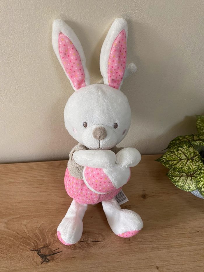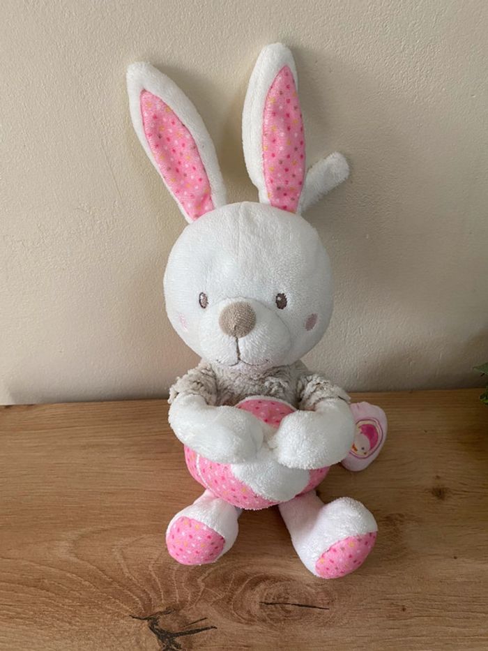 Doudou peluche lapin blanc rose beige balle musical 🎶 mots d enfants - photo numéro 1