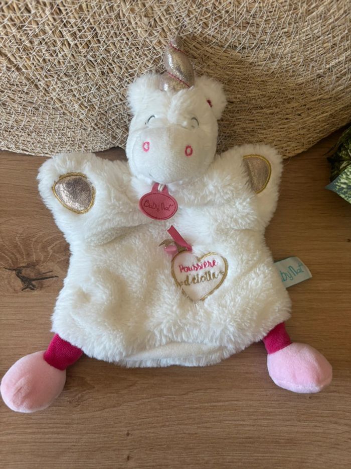 Très bon état Envoi rapide #doudoumarrionnettelicorneroseblancbabynat #marionnettelicornepoussieredetoilebabynat