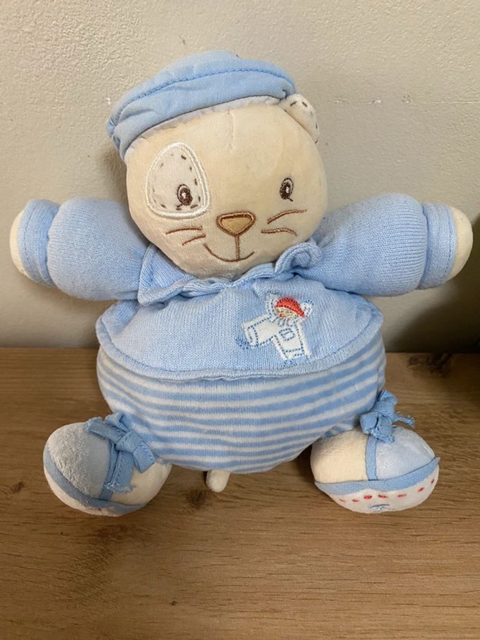 Doudou peluche chat Cocard bleu rayé blanc bonhomme kaloo - photo numéro 1
