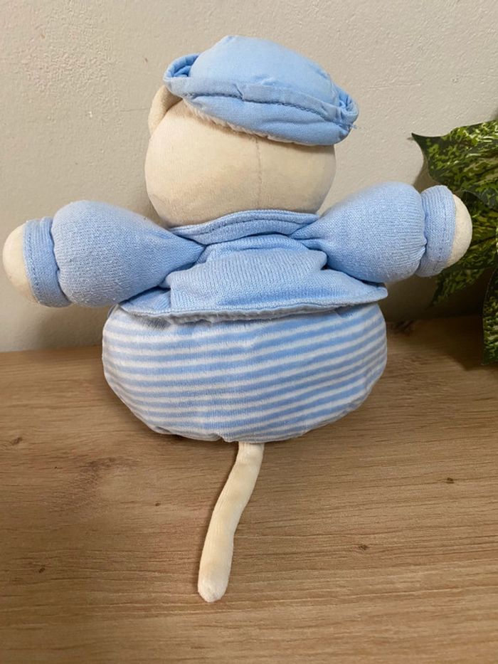Doudou peluche chat Cocard bleu rayé blanc bonhomme kaloo - photo numéro 3