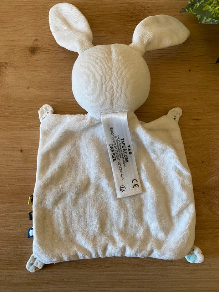 Doudou plat lapin blanc lange motif maison tape à l œil - photo numéro 2