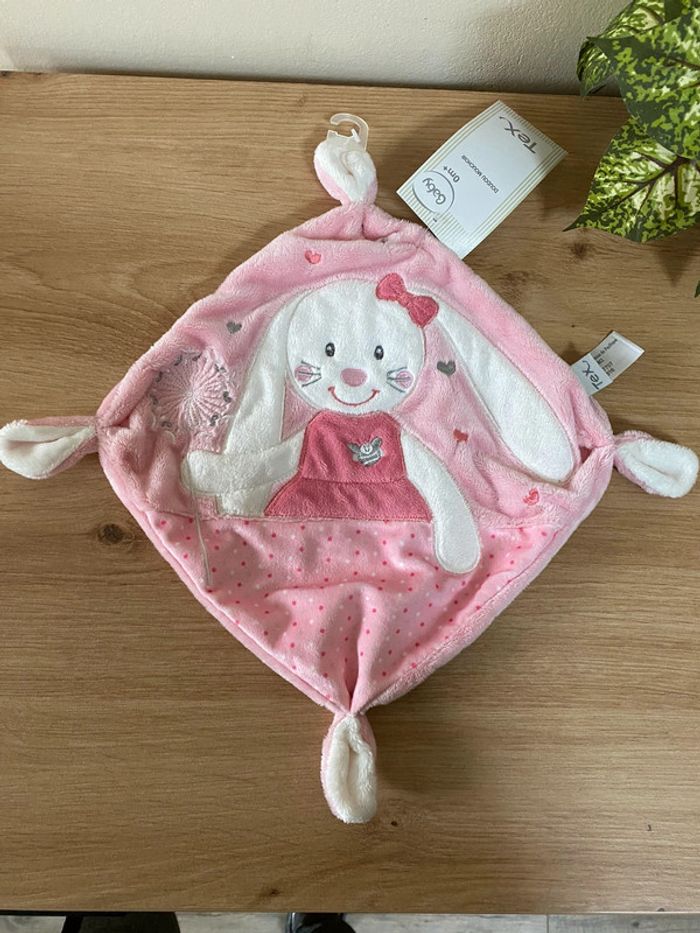 Doudou plat mouchoir lapin blanc rose cœur tex neuf - photo numéro 1