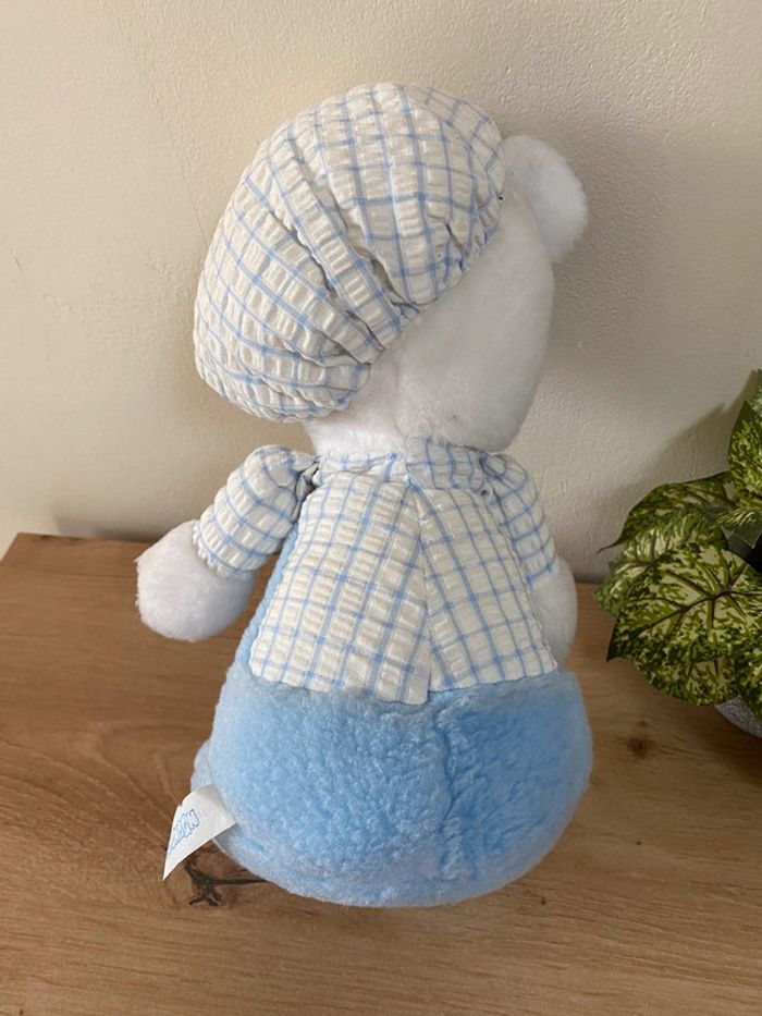 Doudou peluche chat chien casquette béret bleu blanc nounours vintage - photo numéro 3