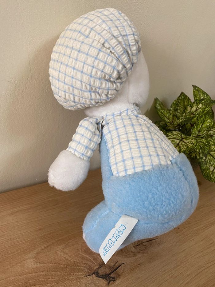 Doudou peluche chat chien casquette béret bleu blanc nounours vintage - photo numéro 4