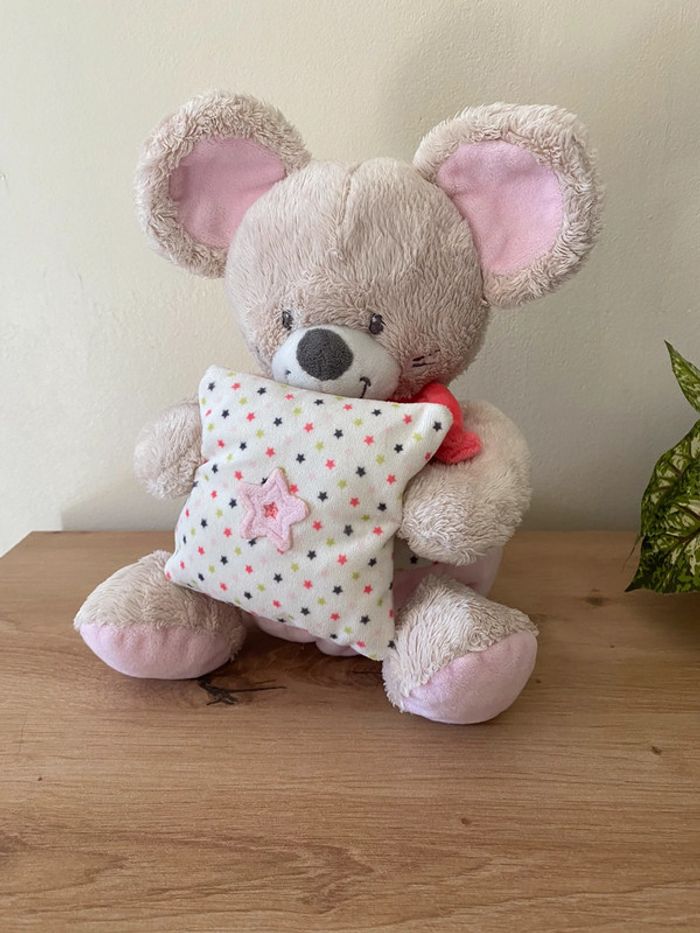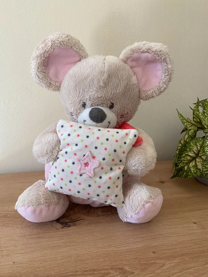 Doudou peluche souris musical 🎶 rose oreiller étoile mots d enfants