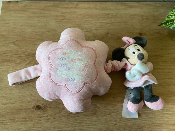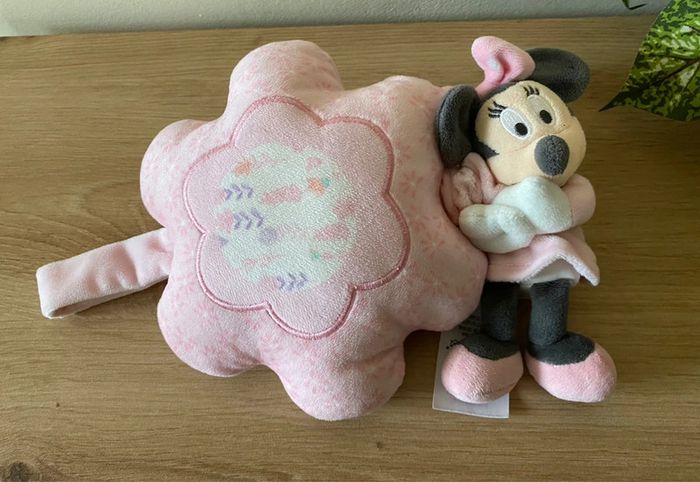 Doudou peluche coussin rose fleur minnie musical Disney store - photo numéro 1