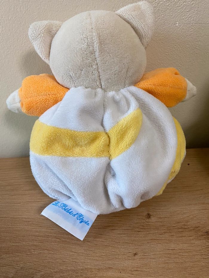 Doudou peluche chat boule orange blanc jaune vert grelot les bébés d elysea - photo numéro 3