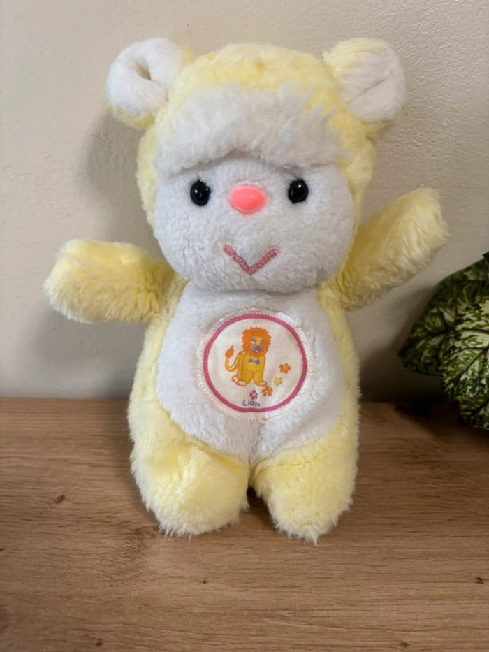 Ancienne peluche vintage lapin jaune blanc lion ajena