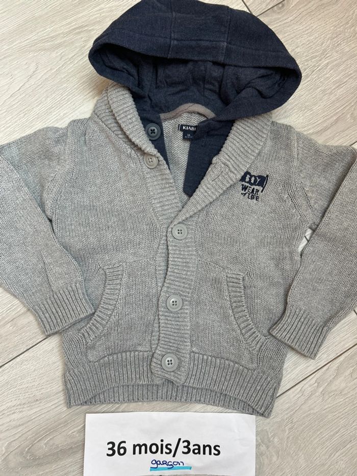 Gilet à capuche Bi matiere Gris et bleu marine Kiabi 3 ans Boy wear of life #ludivine76116garcon3ans