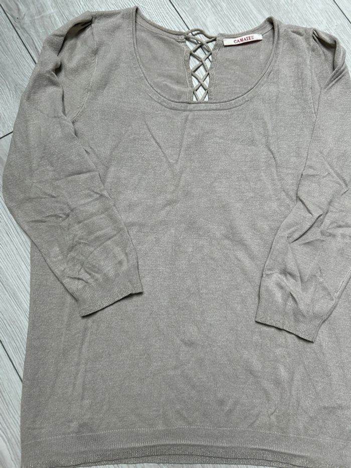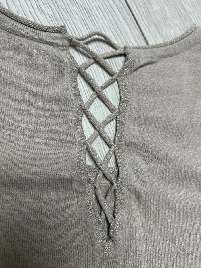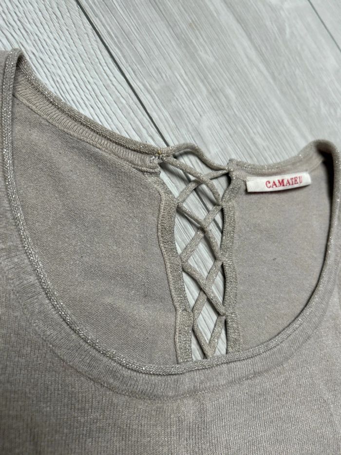 Pull avec petit détail pailletés Ouverture en haut du dos style lacet Camaïeu Taille 2 / 38 / M #ludivine76116femme38