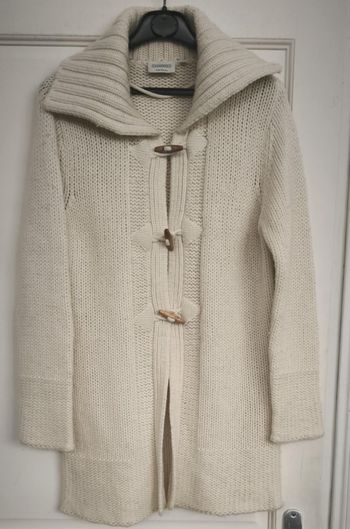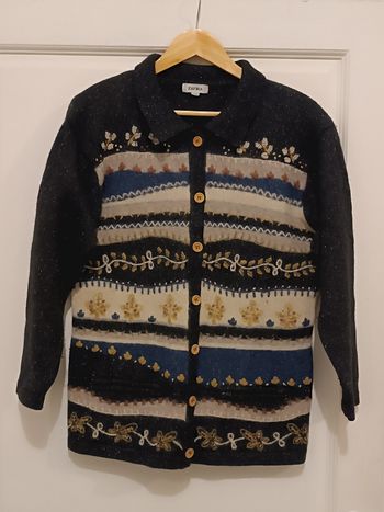 Deux poches sur le bas de poches, sur la poitrine. Une poche intérieure. Fermeture sur le devant par fermeture éclair, doublée par des boutons pressions. Lien de resserrage de la taille, à l'intérieur.