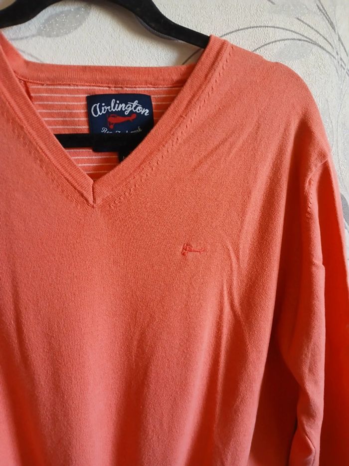 🍍 Magnifique pull fin col en V corail Airlington taille L - photo numéro 1