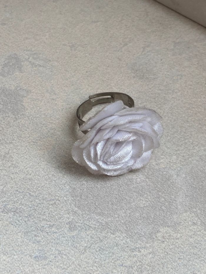 Bague rose blanche réglable