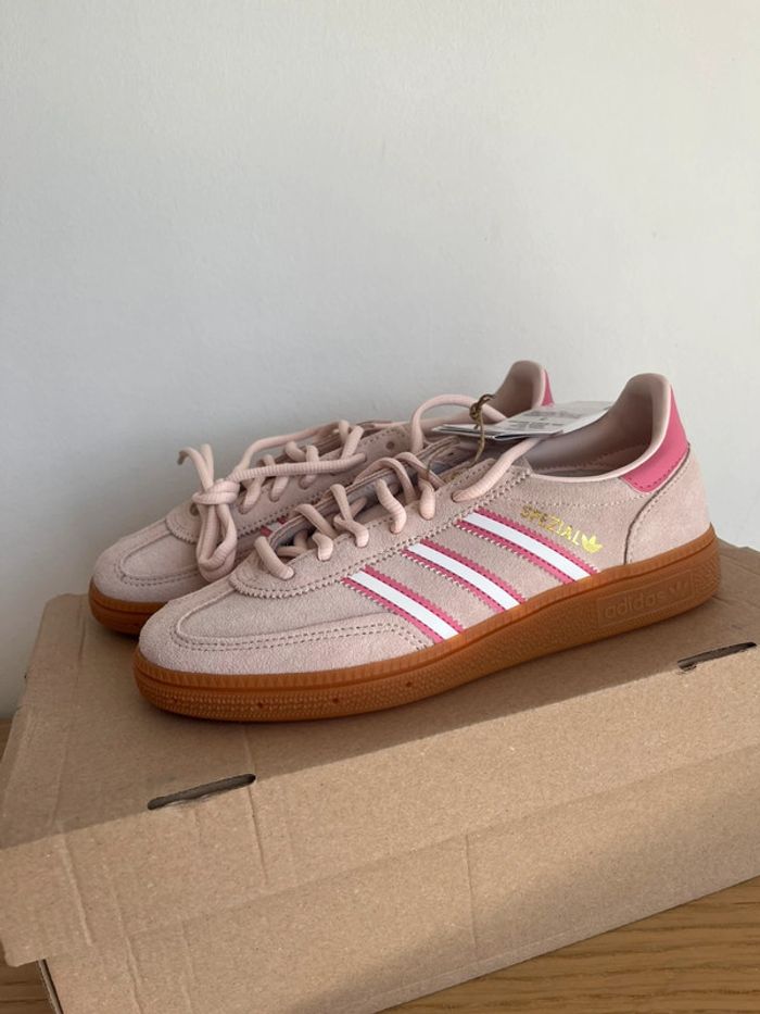 Condition : 100% Neuve jamais portée Modèle : Handball Spezial Kids - Baskets basses enfant Coloris : Quartz/Cloud White/Rose Tone - Combinaison rose pastel Taille : 38 (taille normalement) Silhouette rétro inspirée des terrains de handball Tige en suède premium avec finitions soignées 3 bandes Adidas blanches contrastantes Semelle gomme pour adhérence optimale Prix d'achat : 79,95€ TVA incluse Boîte de remplacement fournie par Zalando (paire 100% authentique) Livraison rapide et soignée Envoi sécurisé dans carton de protection Produit authentique acheté chez Zalando Facture officielle disponible sur demande en message privé Prix négociable si prise rapidement Vendeur sérieux et réactif PS : pas d'échange contre AUCUNE paire, quelle qu'elle soit (Adidas Gazelle Kids, Adidas Samba Kids, Adidas Campus Kids, Nike Dunk Kids, Converse Chuck Taylor, Vans Old Skool Kids, New Balance Kids, Puma Suede Kids, autres modèles enfant...)