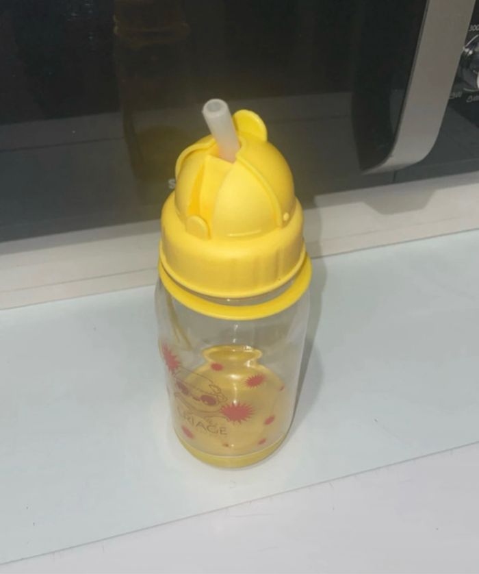 Gourde Jaune et transparente Avec paille Uriage