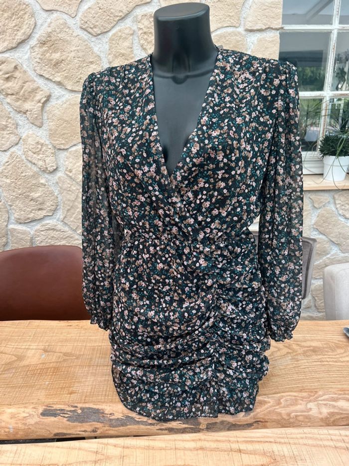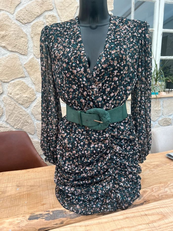 Robe neuve étiquetée femme taille en voilage à fleurs S M belle copine manches longues - photo numéro 2