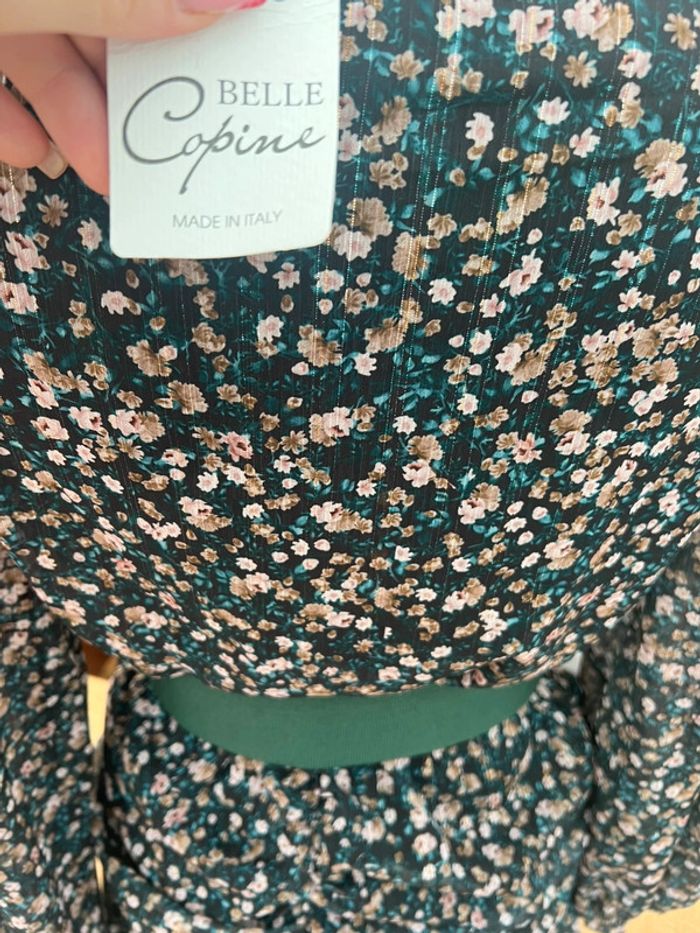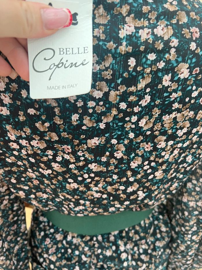 Robe neuve étiquetée femme taille en voilage à fleurs S M belle copine manches longues - photo numéro 4