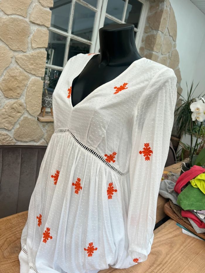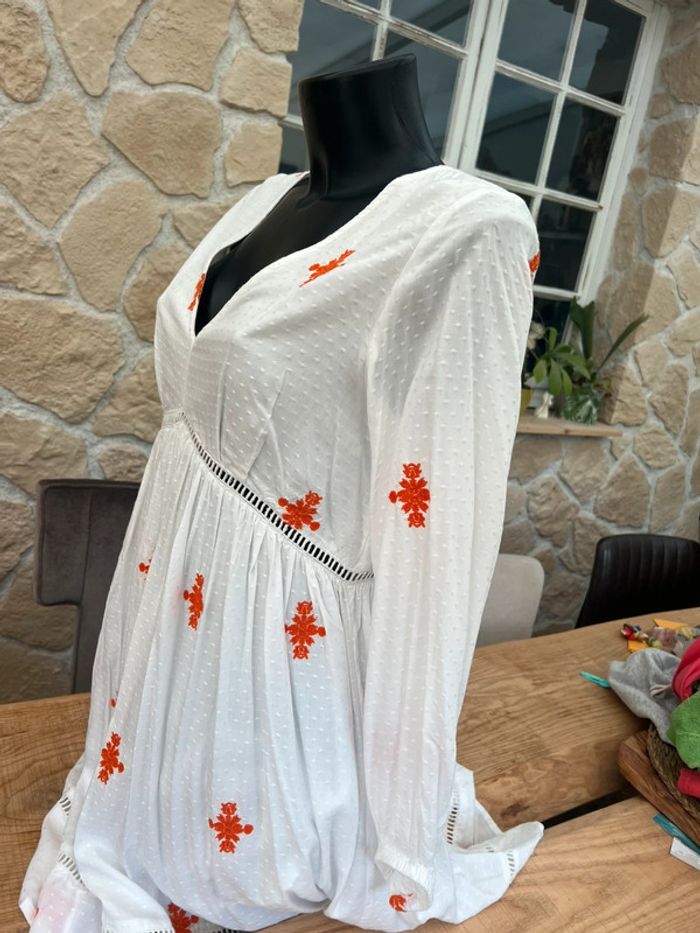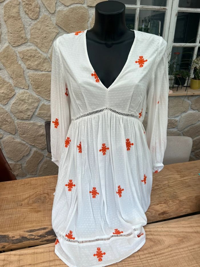 Robe bohème taille M - 38 neuf étiqueté Idéal cérémonie blanche et orange avec broderie Légère parfait pour l’été