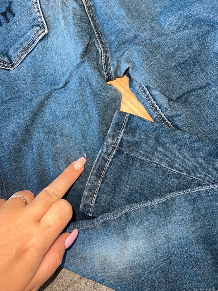 Ensemble fille Chemise petit 14 ans Little Marc Jacobs blanche avec bords rouge magnifique col et manches excellent état Jean skinny tape à l’œil 12 ans détails rouge et marine aux poches arrières bon état