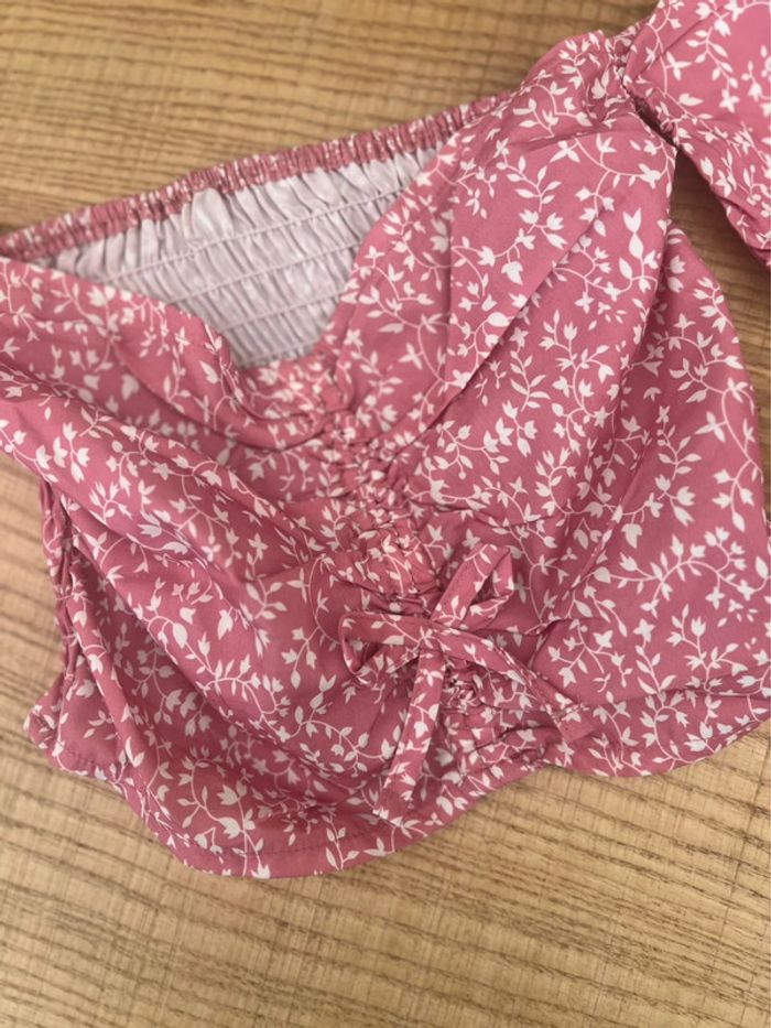 Crop Top shein taille 4 ans épaules dénudées rose blanc