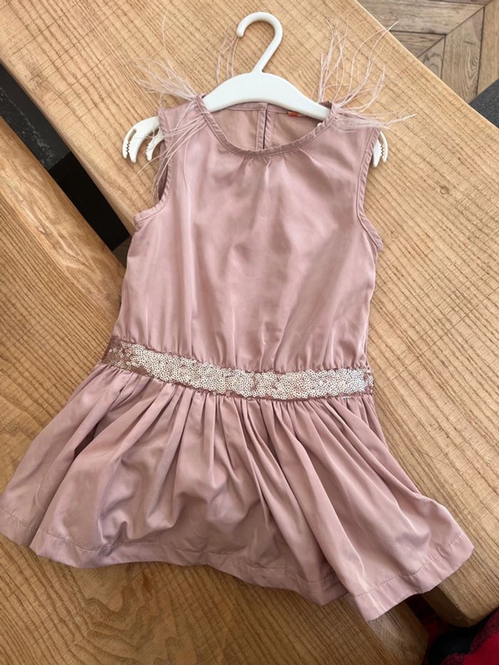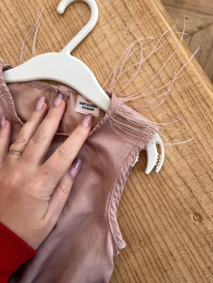Robe de Cérémonie anniversaire mariage fête Noël soirée fille 2 ans beige doré plumes tape à l’œil