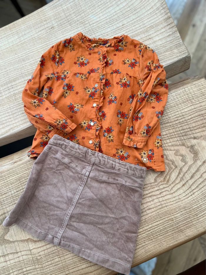 Ensemble 4 5 ans  sergent major H&M blouse chemise  à fleurs jupe velours côtelé - photo numéro 2