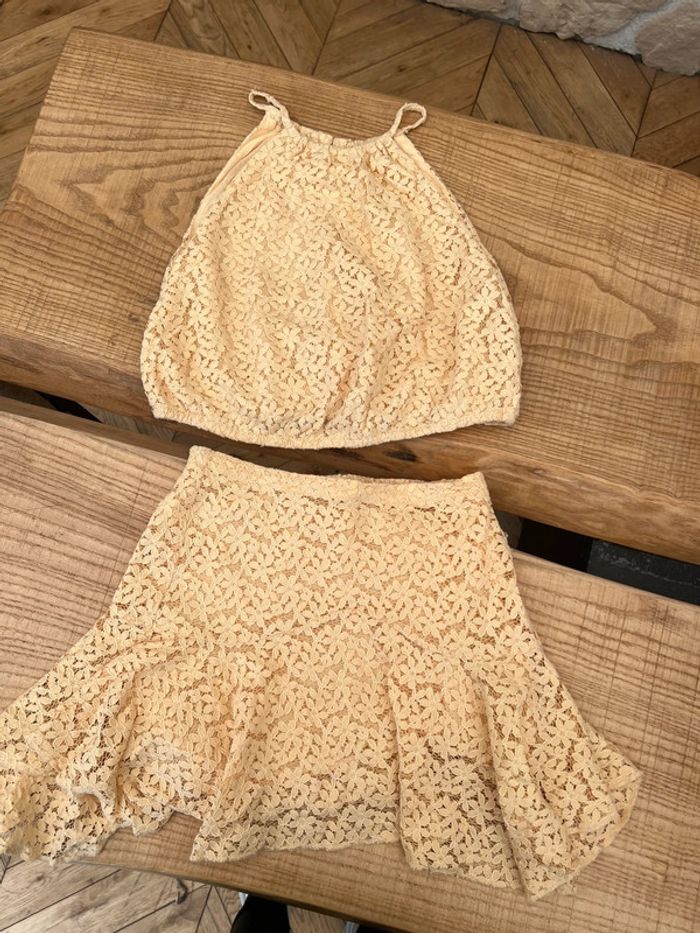 Ensemble Zara été bohème, dentelle 13-14 ans 13 14 top t-shirt cérémonie jupe