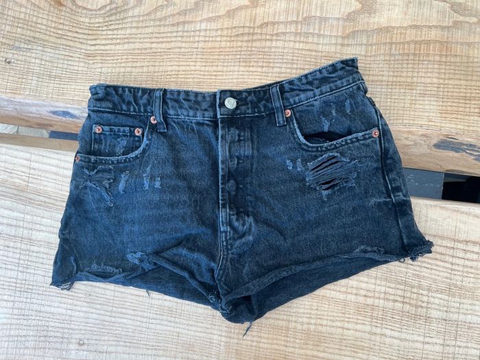 Short noir en jean femme Zara taille 38 M femme destroy - photo numéro 6