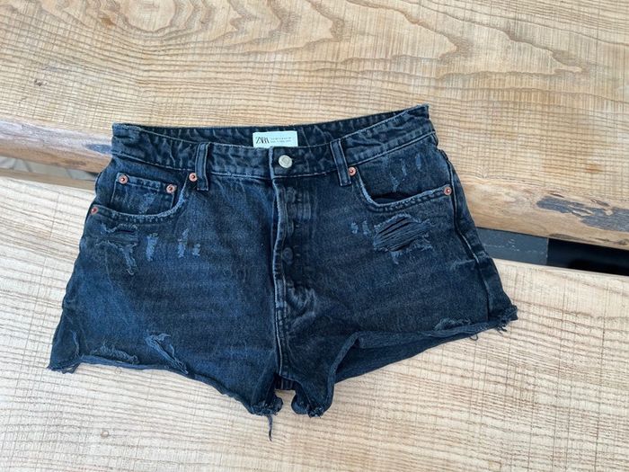 Short noir en jean femme Zara taille 38 M femme destroy - photo numéro 1
