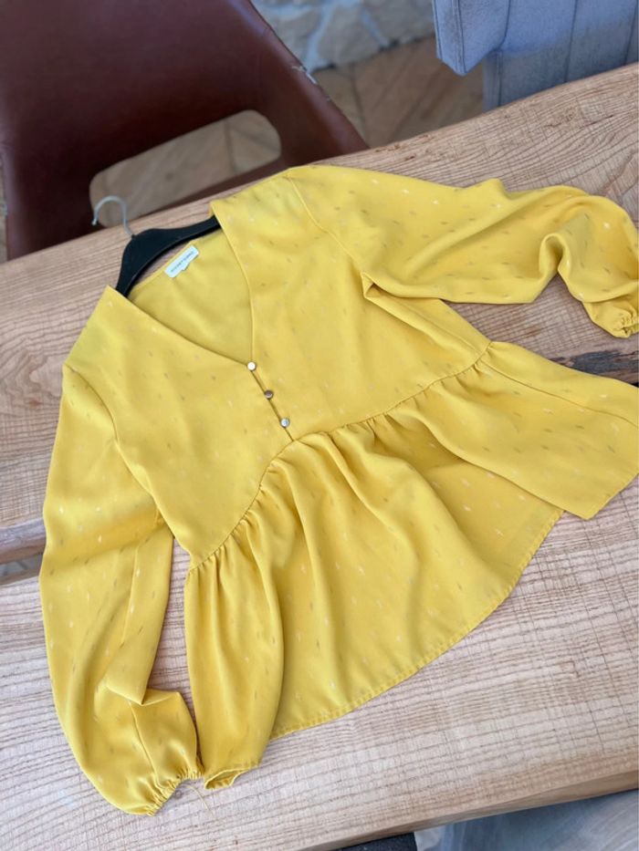 Blouse femme taille M 38 40 manches longues loose jaune moutarde et doré Ikoone & Bianca