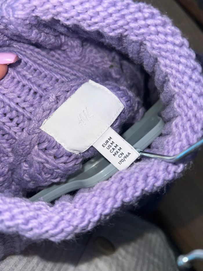 Femme Gros pull chaud épais côtelé col coulé H&M taille M couleur lilas - photo numéro 1