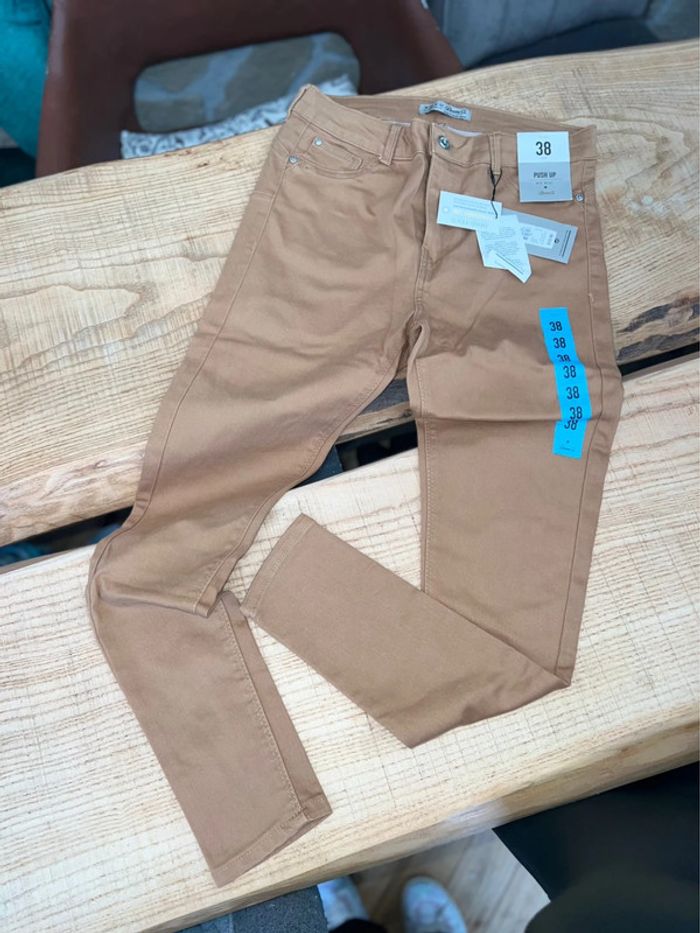 Jean pantalon neuf skinny marron clair camel push up taille 38 - photo numéro 2