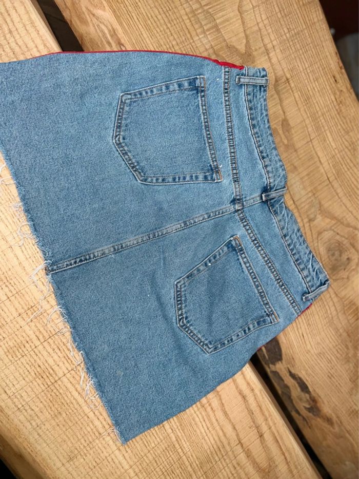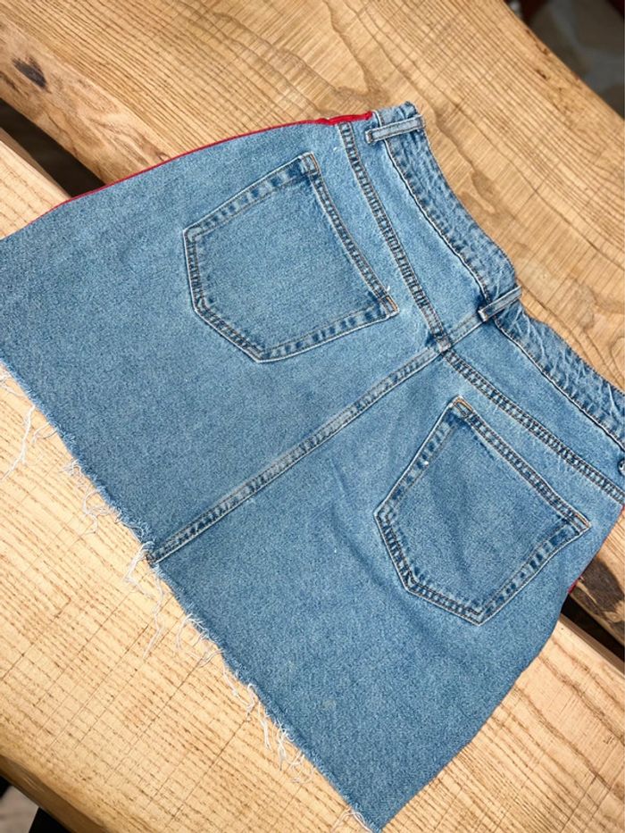 Mini Jupe en jean Zara taille 38 40 bleu rouge bandes - photo numéro 1