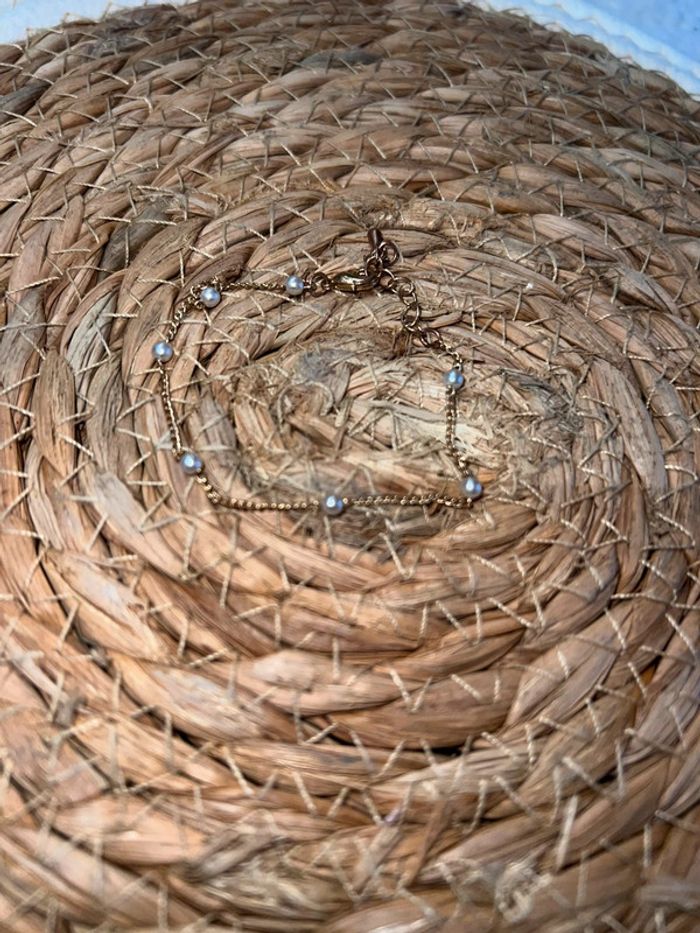 Bracelet chaîne minimaliste acier inoxydable Doré perles blanches - photo numéro 2