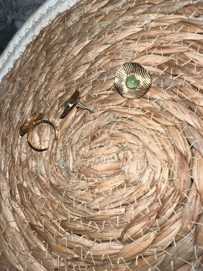 Ensemble parure bijoux doré vert kaki bague réglable bouche d’oreille - photo numéro 4