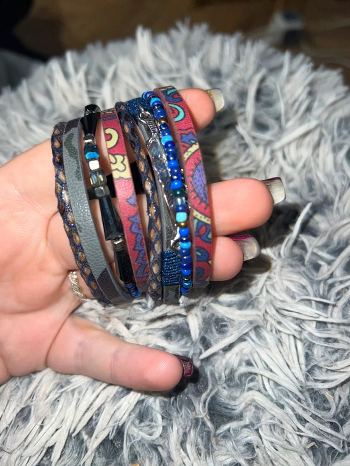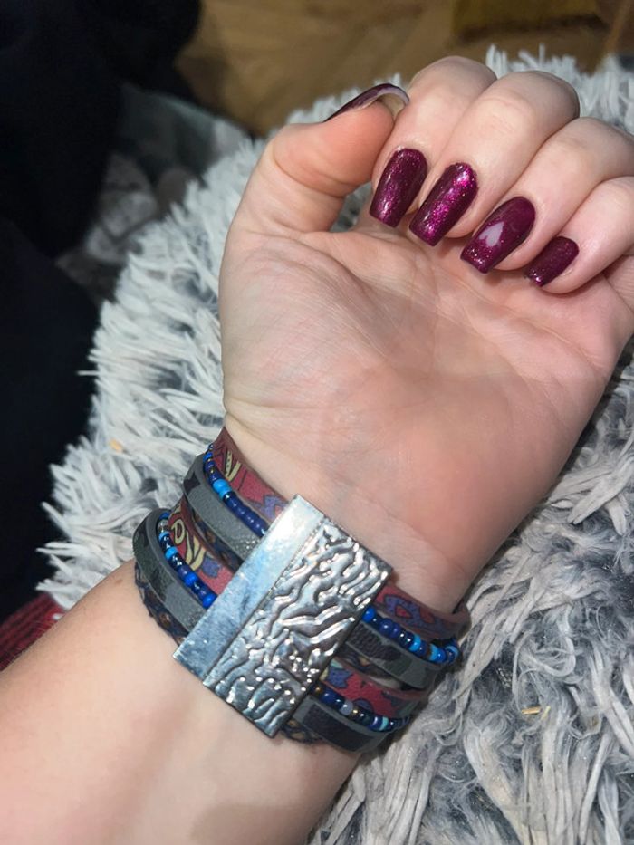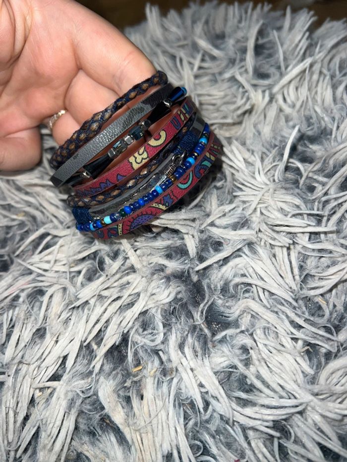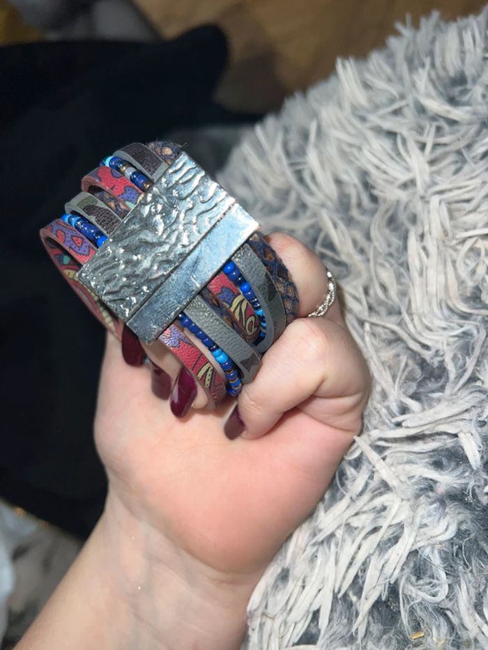 Bracelet APAK JUNGLE Color Silver Manchette souple Multirangs Feuillage Argenté et Multicolore Rhodium et Simili-Cuir Cristal Fermoir aimanté La Chiquita Manchette Argenté et Multicolore APAK JUNGLE Color Silver Description... Bracelet APAK JUNGLE Consultez mes autres annonces bracelets pour éventuellement faire un lot. Manchette souple Multirangs Feuillage Ornée de Cristal Coloris... Multicolore Dimensions... Longueur : 20 cm Fermoir aimanté Composition. Rhodium et Simili-Cuir, Cristal Bijou siglé fourni avec un certificat d'authenticité et livré avec un pochon cadeau griffé de la marque La Chiquita