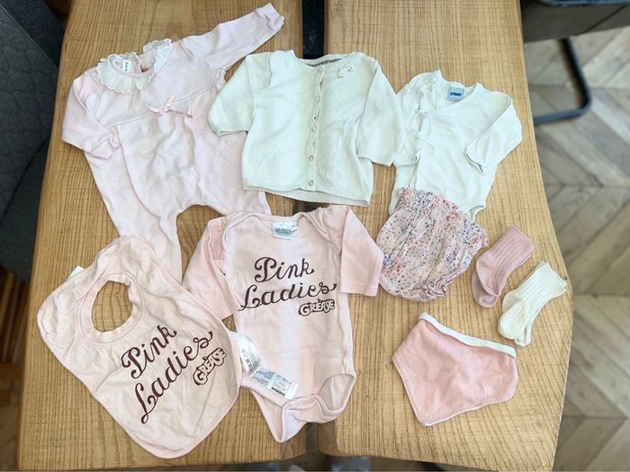 Ensemble lot vêtements bébé fille 1-3 mois 1 3 Grease bloomer Zara  Bodie bavoir gilet kiabi - photo numéro 1