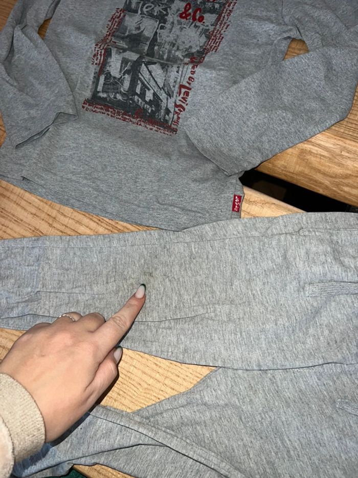 Ensemble garçon T-shirt manches longues levi’s 6 ans tbe Pantalon jogging 6-7 ans bon état Foulard cheich okaidi tbe