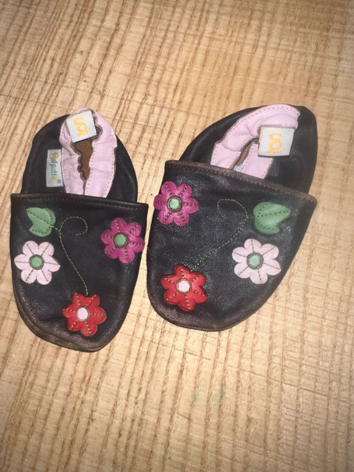 Valeur neuf 28€ galipatte P 22 - 23 Chaussons en cuir souple Liseron Pourquoi des chaussons en cuir souple ? Le pied du bébé en pleine croissance a besoin de développer sa musculature. Il découvre l’équilibre et doit sentir le sol pour prendre de bons repères. Les podologues de nos jours recommandent les semelles souples pour apprendre à marcher. Les chaussons souples protègent le pied de bébé sans le comprimer, ils respectent sa croissance naturelle et un bon apprentissage de la marche tout en le protégeant du froid et des aspérités de sol. Les semelles en cuir suédé ne glissent pas et les chaussons ne sortent pas des petits pieds sans l’aide de maman. Apprendre à marcher n’a jamais été aussi amusant