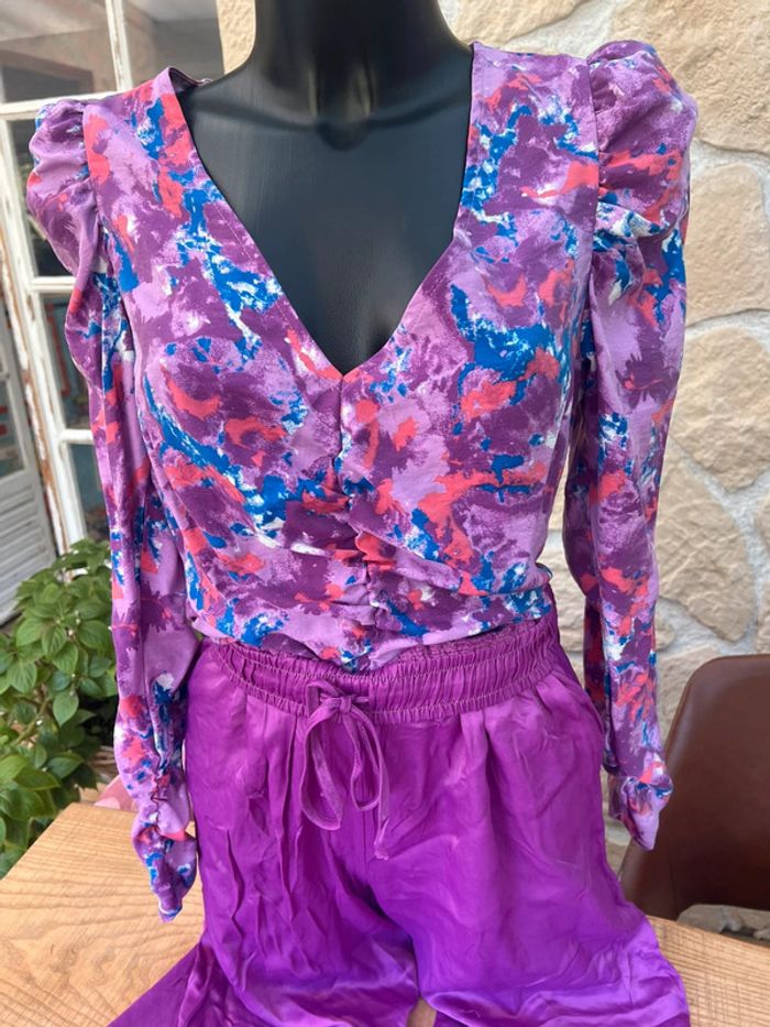 Top refined neuf étiqueté taille S 36 violet été femme blouse tunique