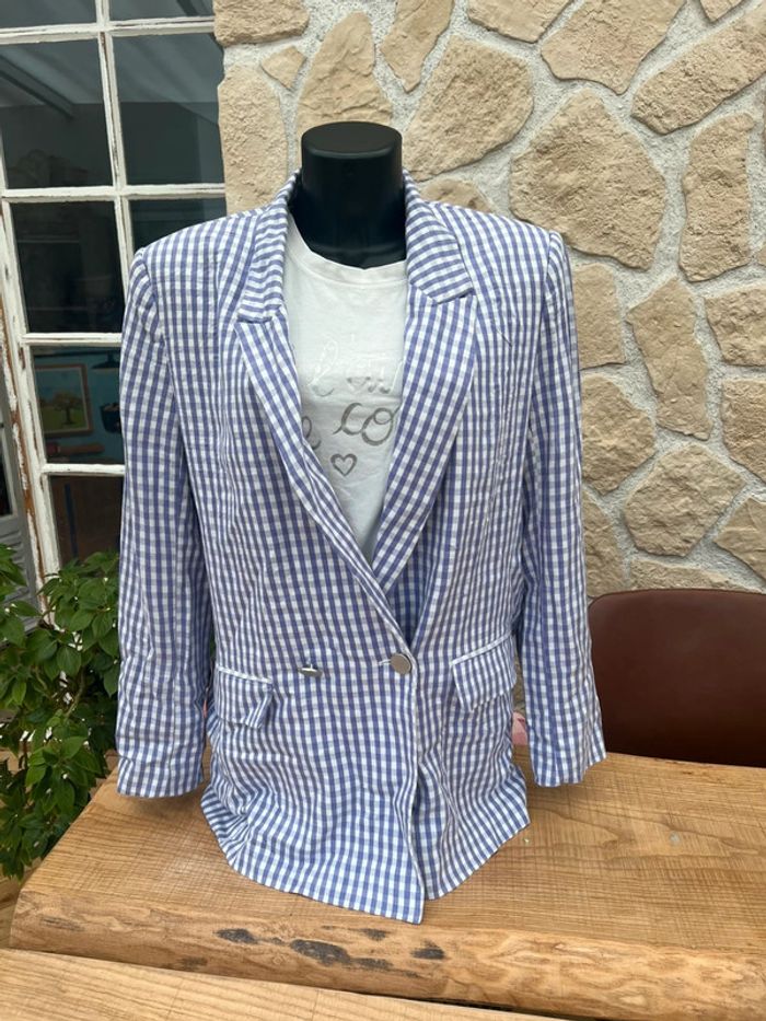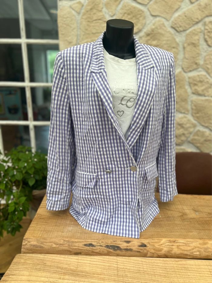 Veste blazer tailleur pimkie oversize taille M 38 Lila et blanc à carreaux Vichy - photo numéro 1