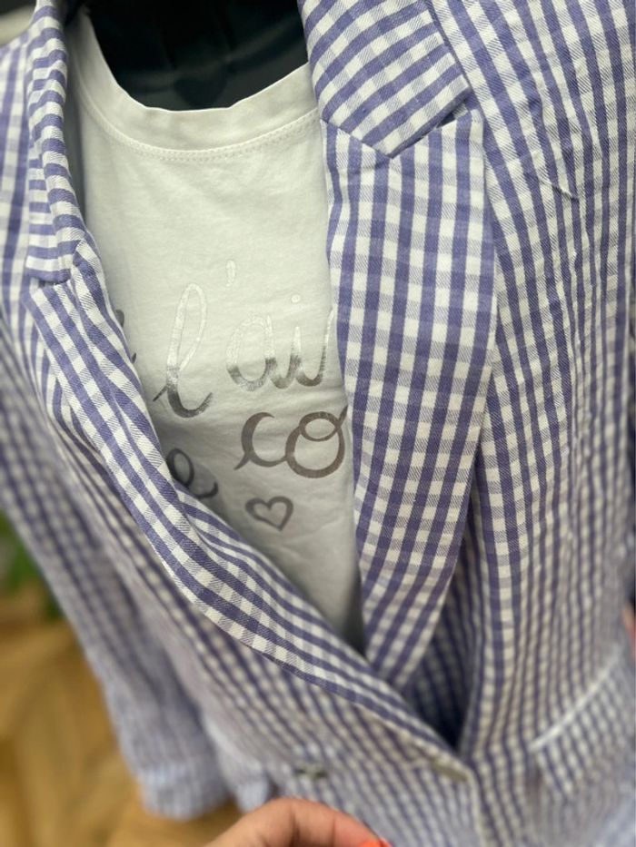 Veste blazer tailleur pimkie oversize taille M 38 Lila et blanc à carreaux Vichy - photo numéro 9