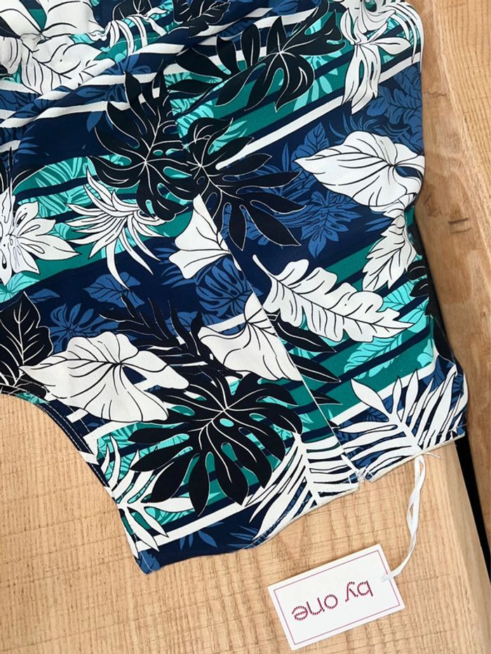 Combinaison pantalon pour l’été motif tropical feuillage 🍃 🌴indiqué taille L XL. Cependant taille pas plus que du 38 40 ‼️ Marque by one Elle est neuve étiquetée achetée, 40 € Couleur bleu, blanc vert