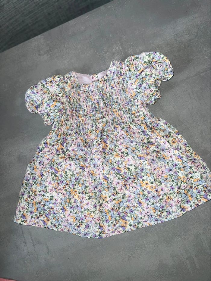 Superbe robe lavande Zara 9 - 12 mois d’été smocks fleurs style Liberty Lila couleurs pastel - photo numéro 2