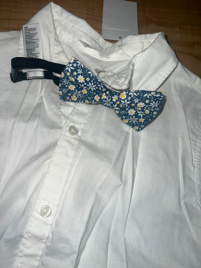H&M chemisette chemise manches courtes blanche avec noeud papillon neuf étiqueté - photo numéro 1