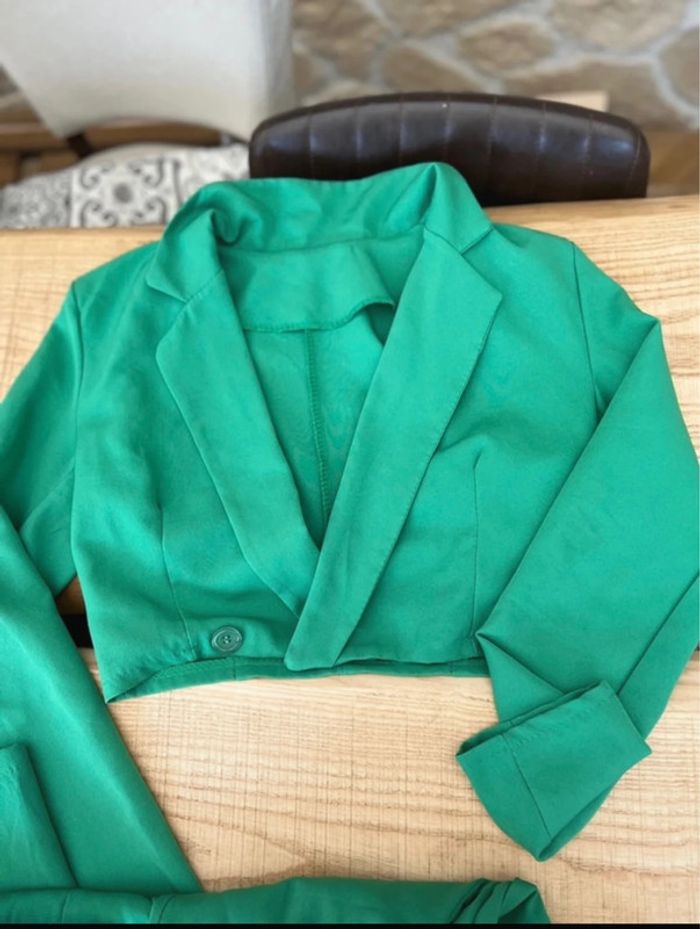 Ensemble tailleur veste pantalon vert taille haute ceinture blazer 38 - photo numéro 2