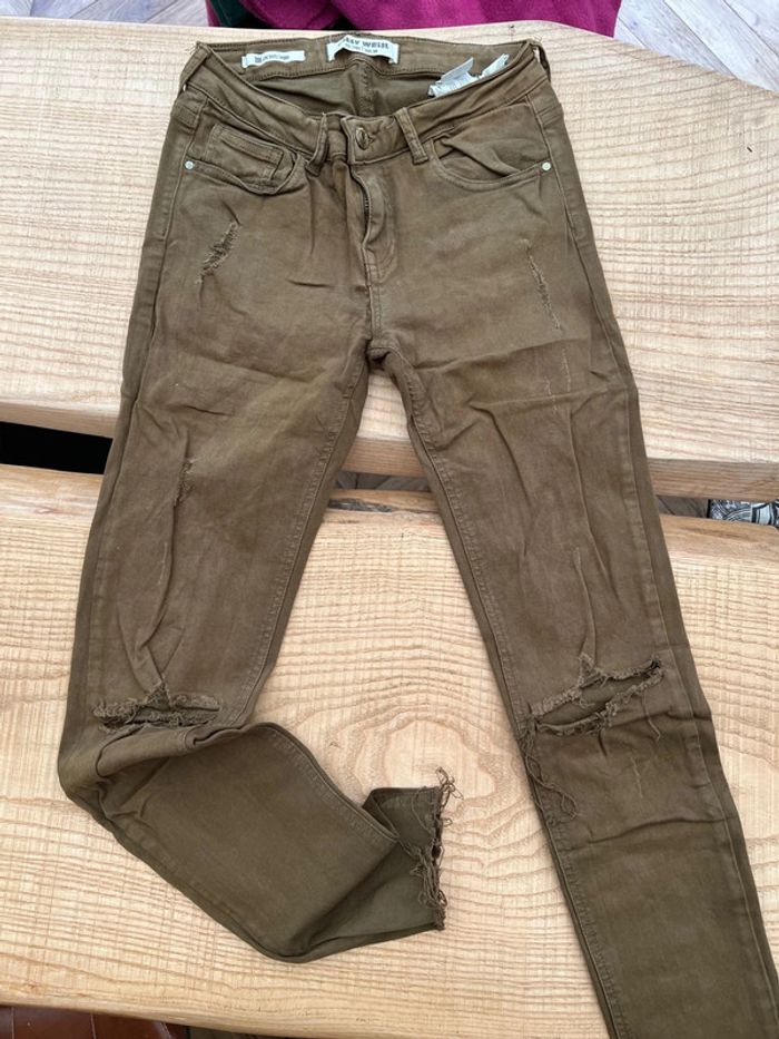 Jean skinny kaki taille haute tally weijl destroy femme taille 38 - photo numéro 1