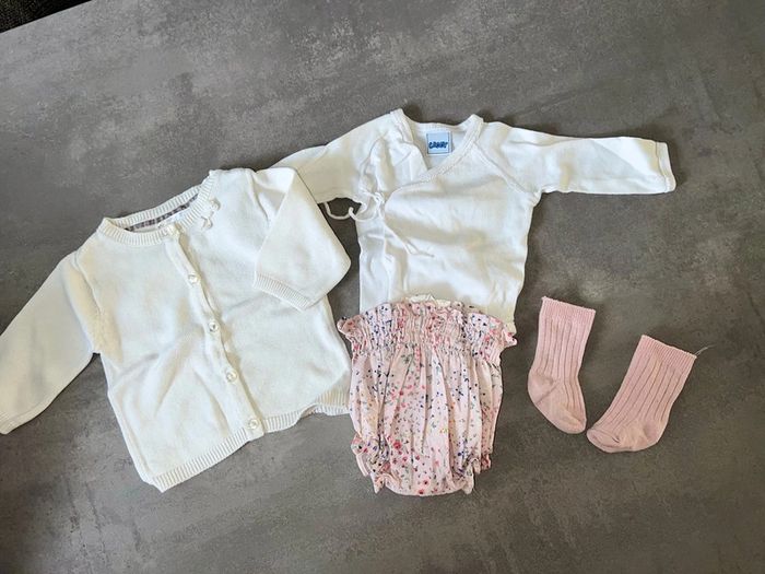 Ensemble 1 mois En très bon état Gilet kiabi Bodie caddy Bloomer Zara Chassettes hautes Zeeman