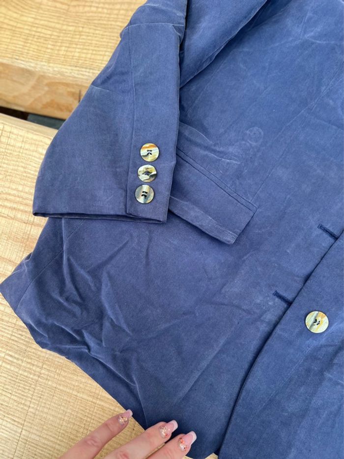 Blazer long femme bleu marine oversize tailleur vintage taille 38 40 M L - photo numéro 5