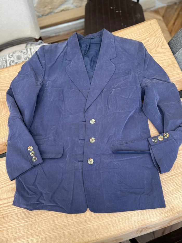 Blazer long femme bleu marine oversize tailleur vintage taille 38 40 M L - photo numéro 3